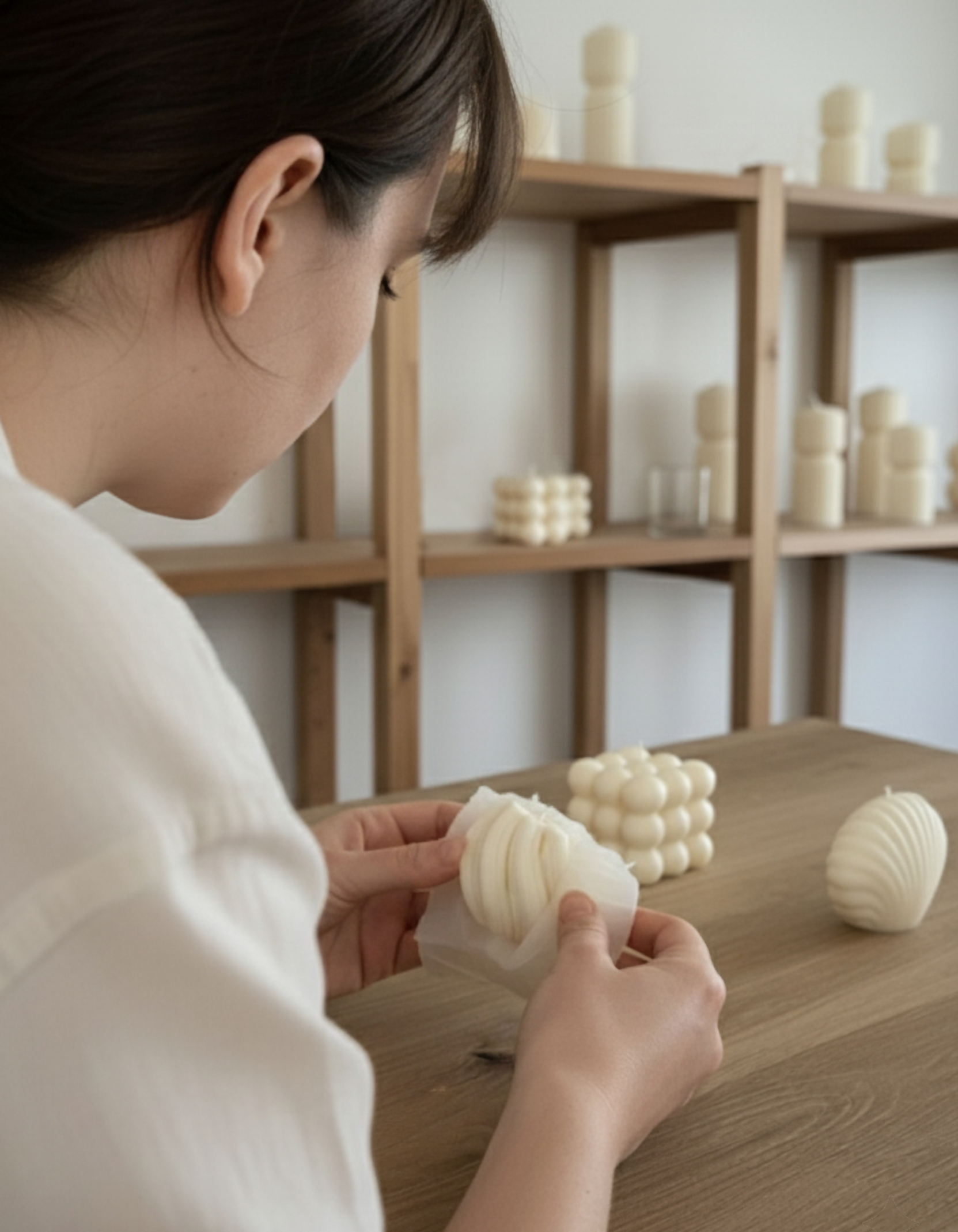 Midt i Sør-Norge finner du Gledefabrikken – et lite studio fullt av duft, lys og kjærlighet til håndverk. Her skaper vi alt for hånd, med ro, kjærlighet og en dose sørlandsk sjarm.
